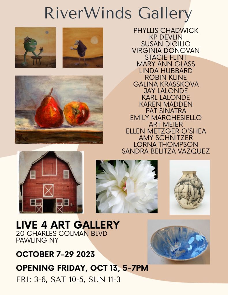 I’m honored to have six paintings exhibiting in the next RiverWinds show at Live 4 Art Gallery in Pawling, New York this October.
