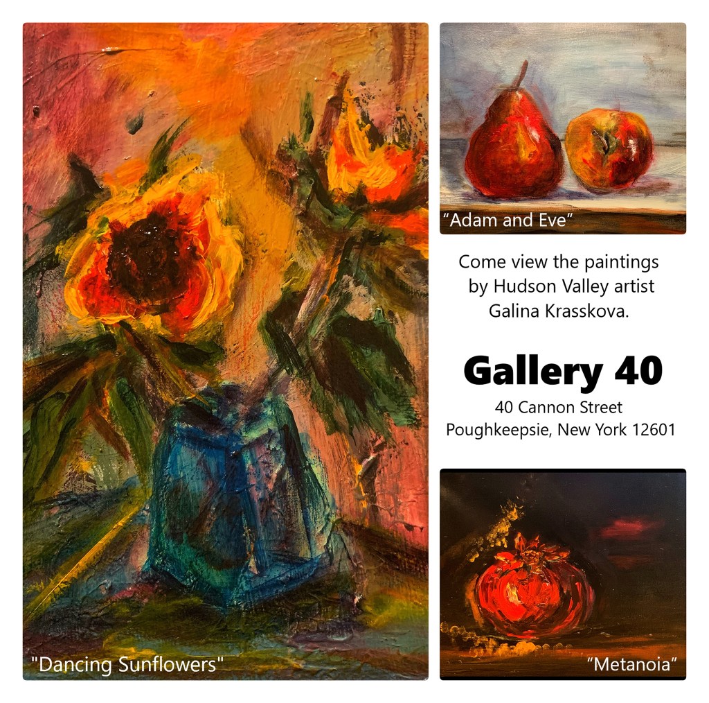 Beginning November 15, 2023 I’ll have several paintings displayed on the upper floor of Gallery 40, located at 40 Cannon Street in Poughkeepsie, New York.